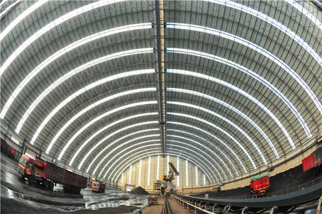 堆场料场封闭式主体结构为新型的钢邳州网架结构,维修结构为邳州钢结构邳州不锈钢板和纤维增强塑料灯具,其外形以邳州网架式和平板为主,连接柱邳州施工自由,设置喷雾自动喷水系统,从而可以实现棚内所有物料的覆盖,减少物料在运输过程中的损耗,起到防尘的作用,减少工厂关闭后的二氧化硫排放量,50mg/m3颗粒排放量小于10mg/m3,非常适合低能耗。低闭库自动感应反应对库存轮胎进行清洁,确保轮胎不受道路污染;封闭的储存区可从源头控制粉尘污染,控制无序排放。